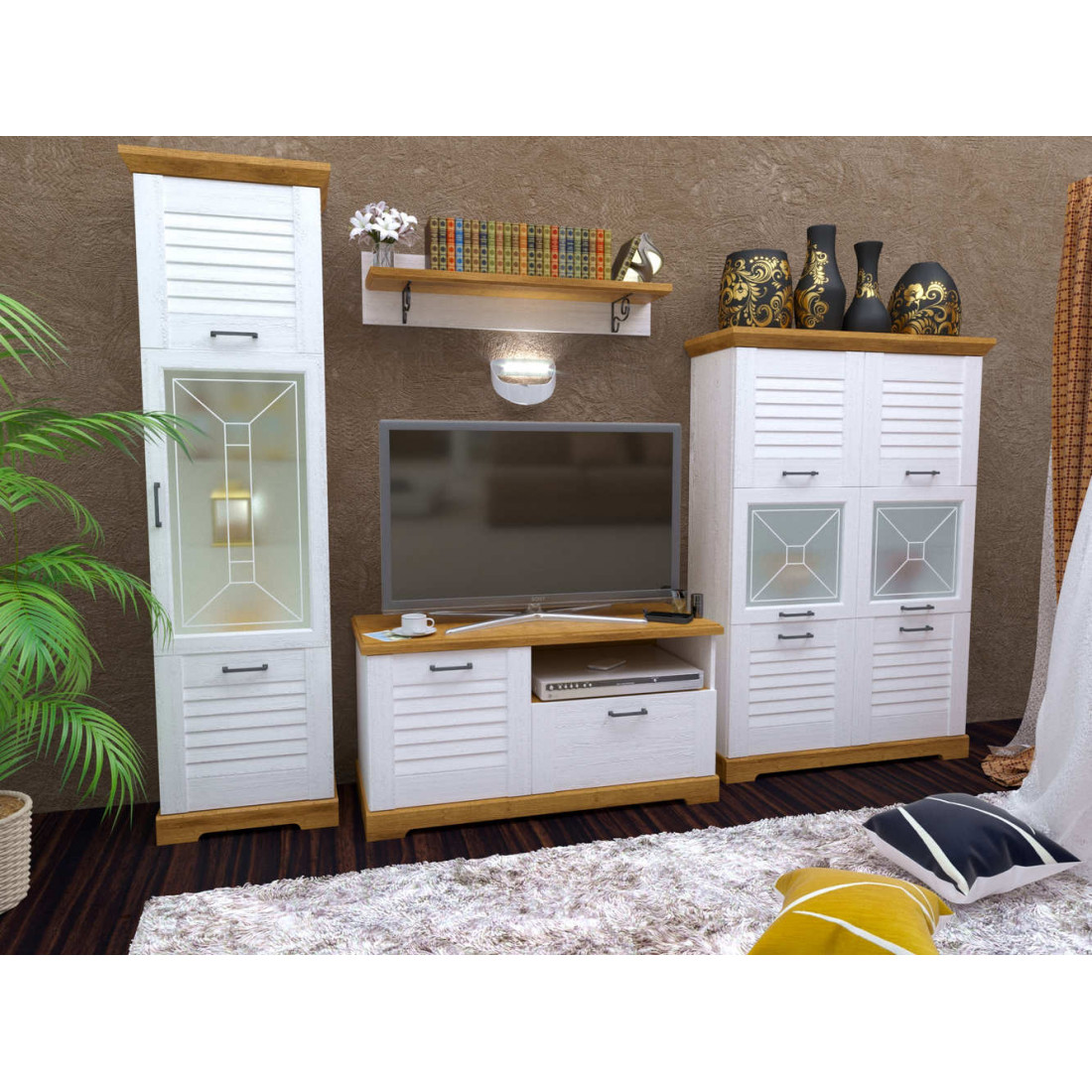 Создавайте романтичный и спокойный интерьер с мебелью для гостиной «Кантри». Отсылки к натуральным материалам, несколько вариантов расцветки, уникальный дизайн и разнообразие модульной системы. Сделайте ваше жилое пространство по-настоящему уютным и изысканным.