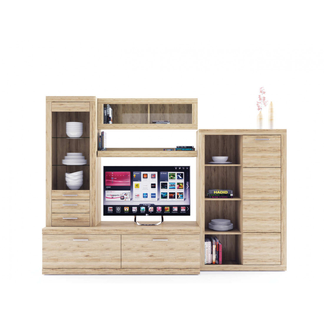 Гостиная Вега Скандинавия 2 (глянец, белый + дуб каньон)