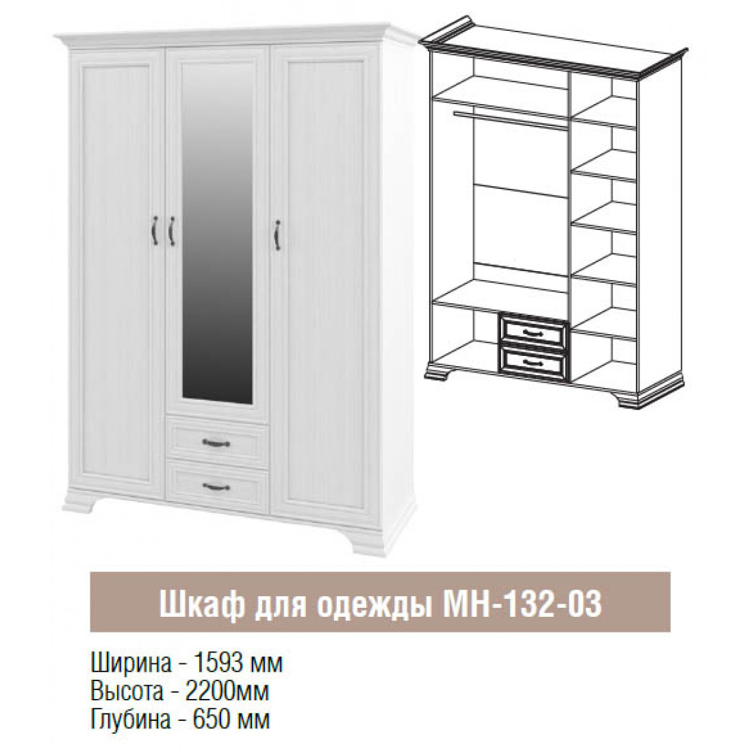 Двухстворчатый шкаф для одежды Юнона МН-132-05