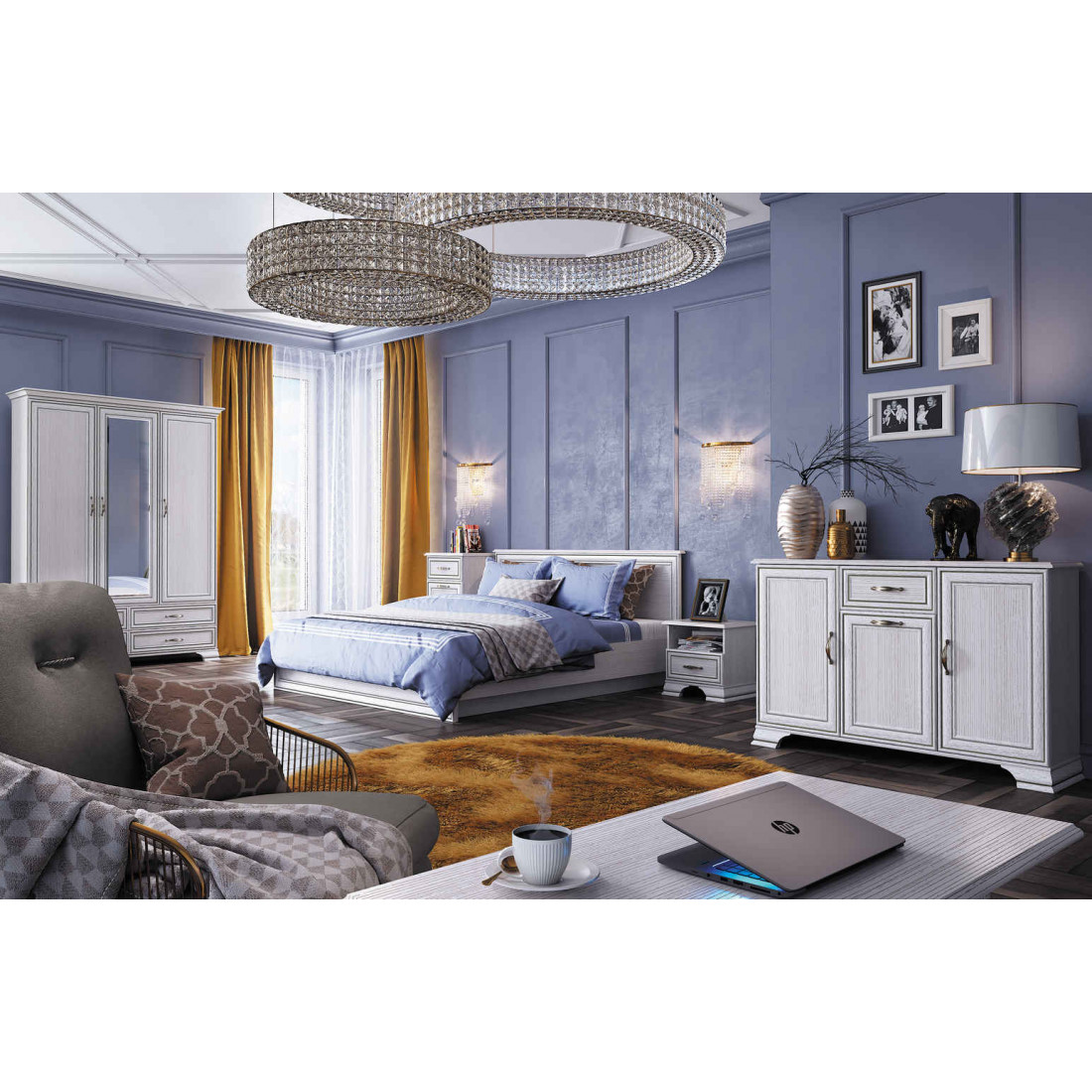 Спальня Тиффани - это классика, которая всегда остается модной и стильной. Сочетание светлого оттенка с древесной структурой, нежных фасадов, обрамленных изящными планками с патиной и качественных металлических ручек создадут атмосферу тепла и уюта, а возможность использования подсветки делает эту коллекцию особенно привлекательной. Основное достоинство TIFFANY - эстетическая функциональность, которая роскошно дополнит различный по назначению интерьер.
